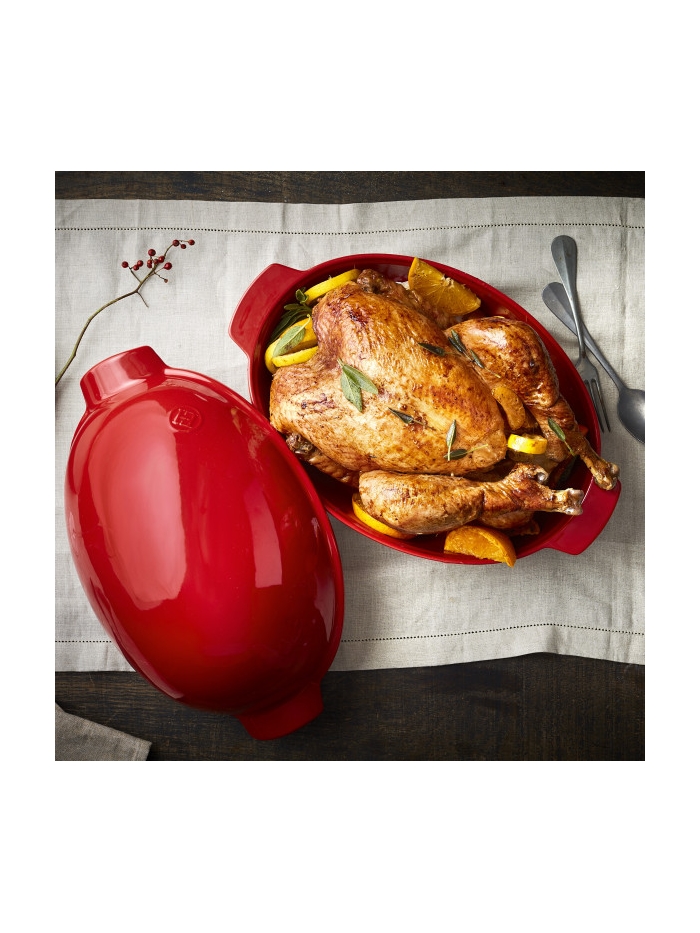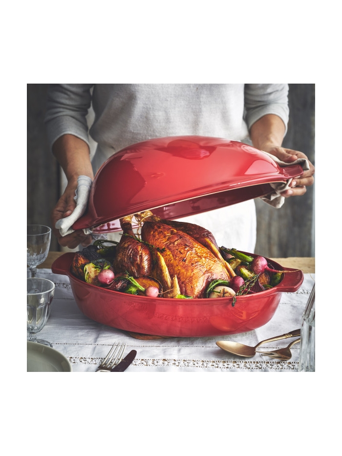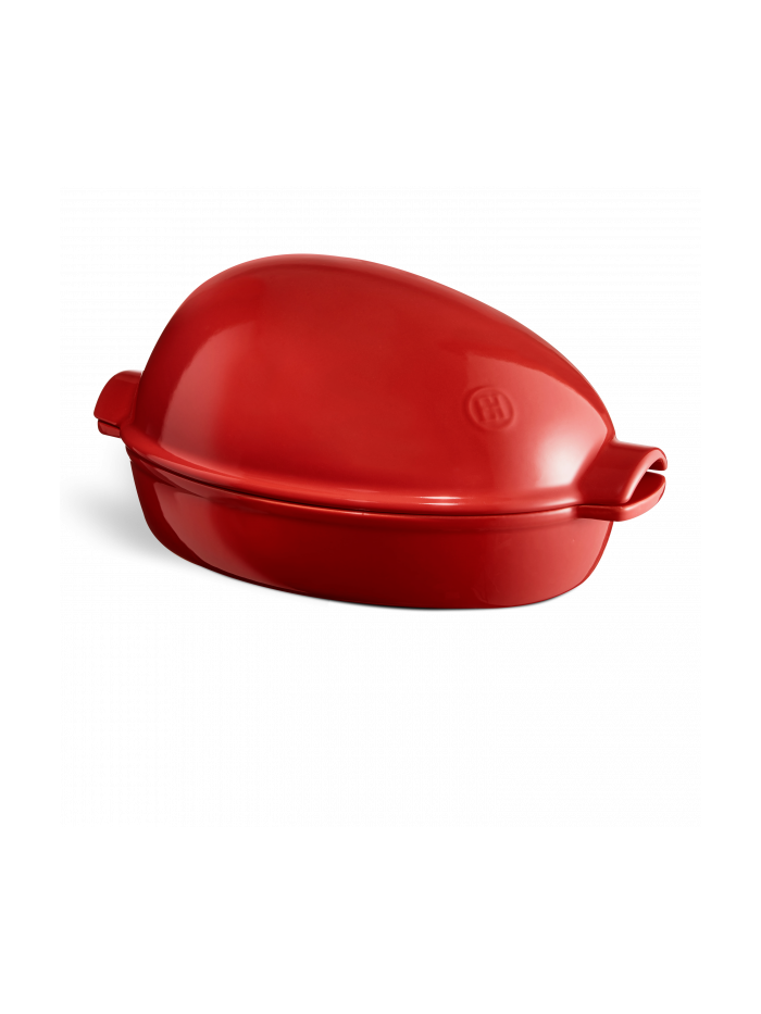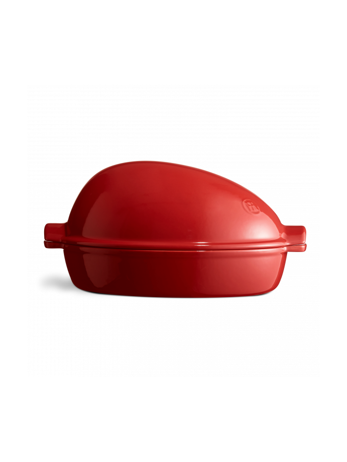 Une peau croustillante, une chair moelleuse : la forme originale de la grande Brique à Rôtir épouse celle des volailles ou des rôtis, pour assurer leur cuisson parfaite – sans avoir besoin de les arroser – et sans salir votre four.