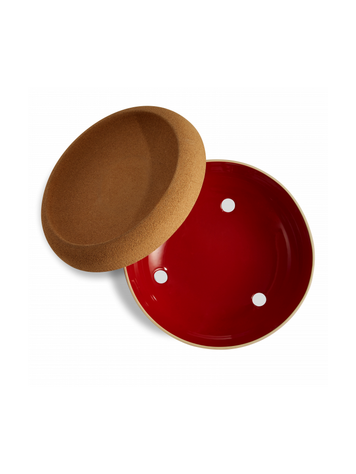 Sous le couvercle, l’absence de lumière permet de retarder la germination. Comme la céramique et le liège aident à réguler le taux d’humidité, avec ses 3 petites ouvertures qui assurent une ventilation idéale, la base de la Grande Coupe recrée les conditions d’une micro cave au cœur de votre cuisine ou votre salle à manger.