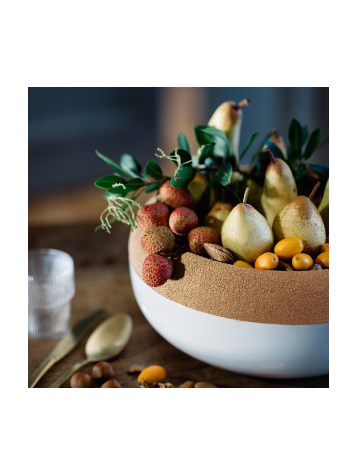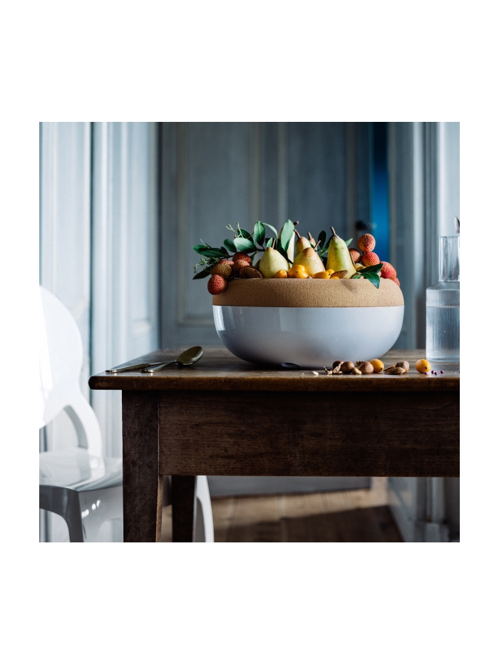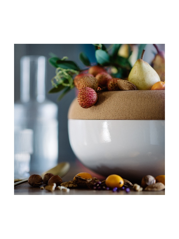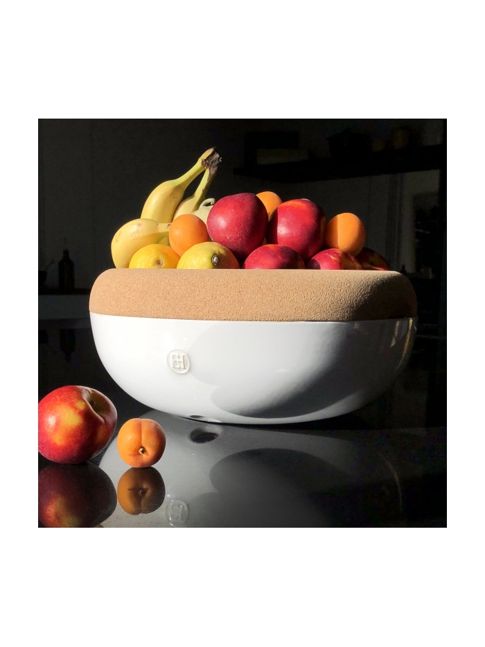Dans la partie supérieure, qui sert de coupe à fruits, elle accueille avec délicatesse même les plus fragiles d’entre eux. En effet, un fruit en contact avec le liège sera moins susceptible de s’abîmer. Et selon les astuces ancestrales de nos grands-mères, il est dit que le liège n’est pas apprécié des moucherons ; il les repousserait.