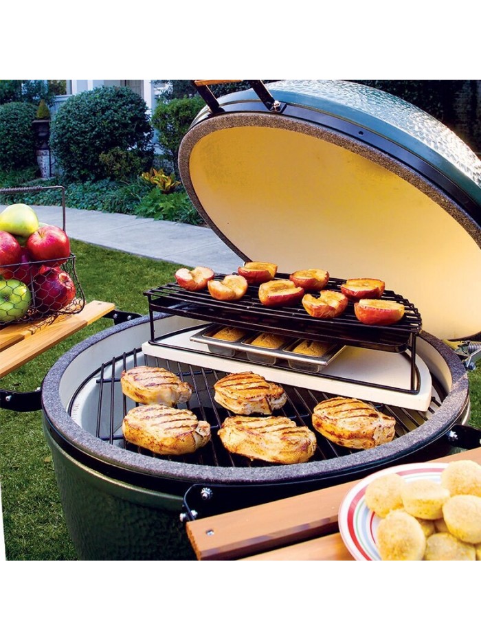 La demie pierre de cuisson pour convEGGtor vous permet de réaliser une multitude de petits plats divers ! Hyper polyvalent, vous pouvez en effet l'utiliser avec le panier pour convEGGtor en l'insérant entre deux plats, pour combiner la cuisson directe et indirecte, ou bien la juxtaposer avec une seconde demie-pierre de cuisson afin de créer un véritable tablier de convection.