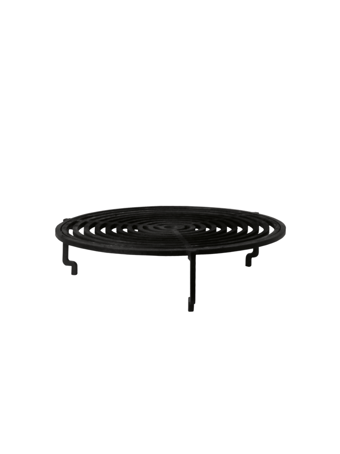 Elle est composée de 2 éléments : la grille et le trépied, et se place au centre de la plaque. Cet espace additionnel de cuisson est surélevé afin de pouvoir insérer facilement les bûches dans la vasque, pendant la cuisson.