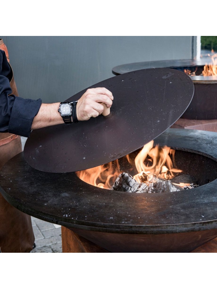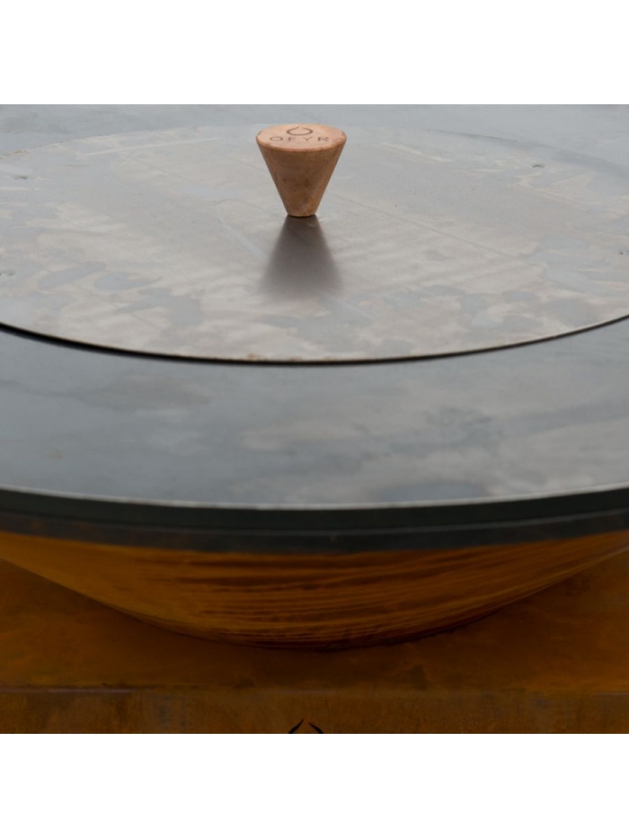 L'étouffoir 85 vous permet d’éteindre en toute sécurité votre OFYR après utilisation, étouffer le feu et couvrir les cendres. Il est en acier thermo laqué noir avec une poignée en bois d’acajou.
