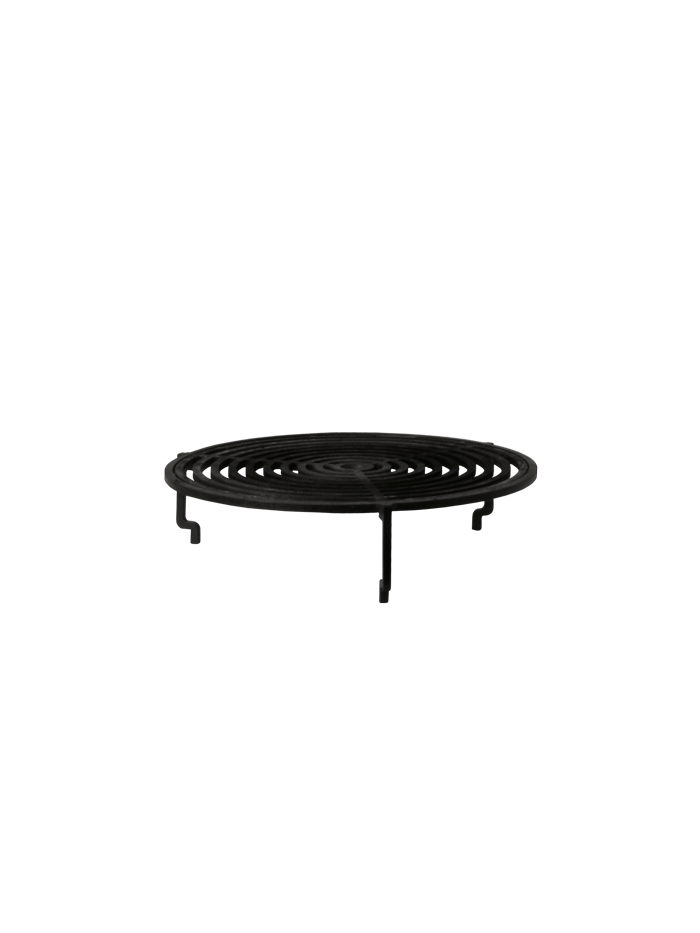 Elle est composée de 2 éléments : la grille et le trépied, et se place au centre de la plaque. Cet espace additionnel de cuisson est surélevé afin de pouvoir insérer facilement les bûches dans la vasque, pendant la cuisson.