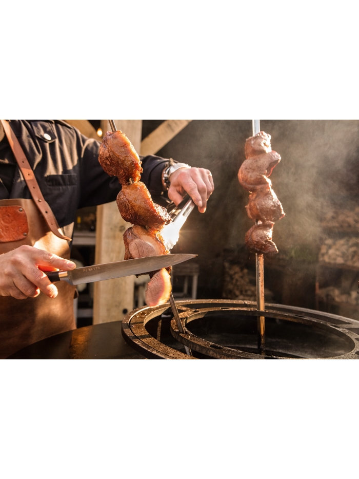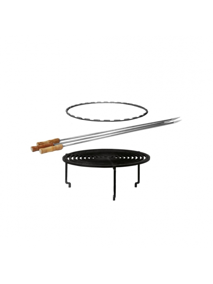 Le set comprend la grille ronde 100, l’Anneau Brochette Horizontal 100 et les brochettes 85.