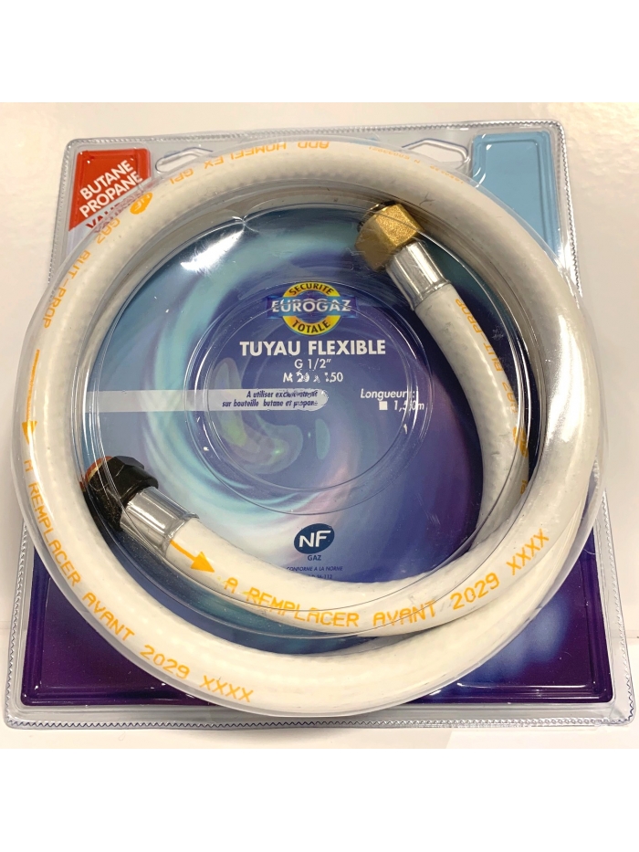 Ne pas utiliser ce tuyau flexible pour des GPL en phase liquide. Veillez à bien lire les "conseils à respecter" au dos de l'emballage avant l'utilisation.