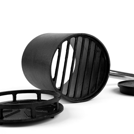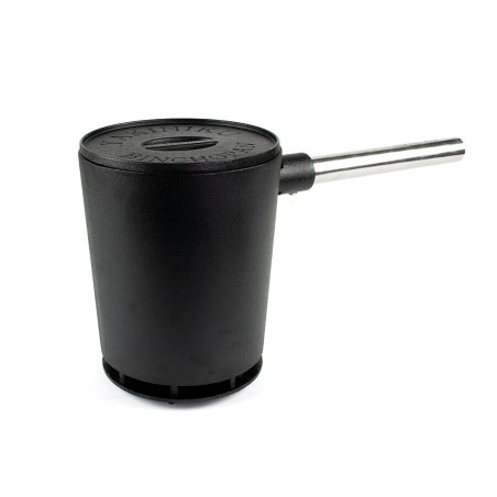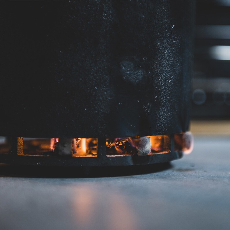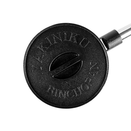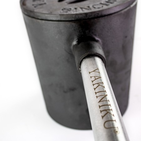 Pour éteindre le Binchotan après utilisation, placez le fond de la casserole avec le logo vers le haut sur une surface ignifuge. Placez le morceau du milieu sur le dessus. Remplissez ensuite la pièce centrale avec la Binchotan incandescent et fermez l'oxygène avec le couvercle. En utilisant le binchopan comme extincteur, vous pouvez facilement réutiliser votre charbon de bois pour la prochaine session de grillades. Cela vous permet d'utiliser votre carburant de manière plus durable et de réduire les émissions de CO2. Veuillez noter que la poignée du binchopan devient chaude pendant l'utilisation. Vous pouvez allumer à la fois votre Shichirin et votre Kamado avec la binchopan.L