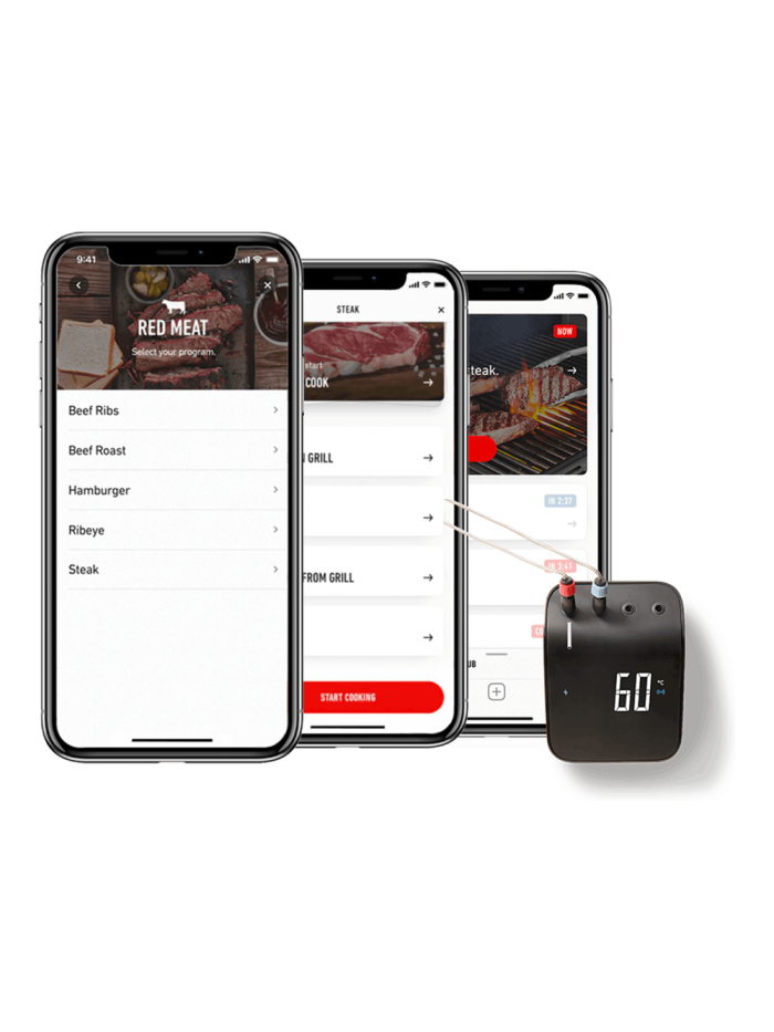 L'assistant "Weber Connect Smart Grilling Hub" est votre secret pour cuire les aliments à la perfection. Il s'agit d'un assistant barbecue qui vous accompagne pas-à-pas en envoyant des notifications directement sur votre smartphone pour vous donner toutes sortes d'informations, du compte à rebours pour la cuisson d'un produit jusqu'à l'indication du moment où il est prêt à être retourné/servi. Un simple coup d'œil à votre téléphone suffit pour vérifier que tout grille à la perfection.