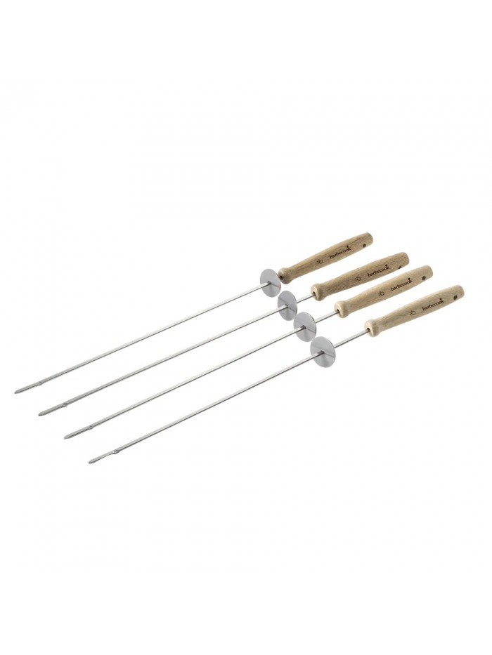 Set de 4 Brochettes en Inox et Bois avec Bague Coulissante - Barbecook