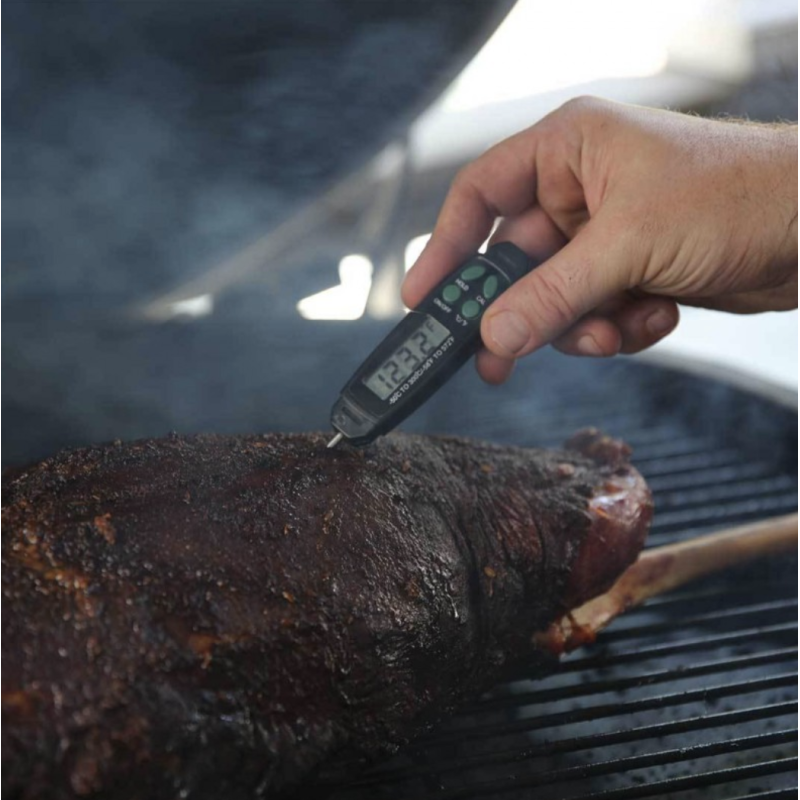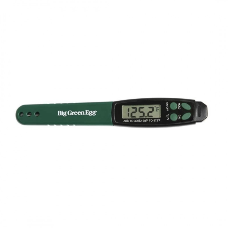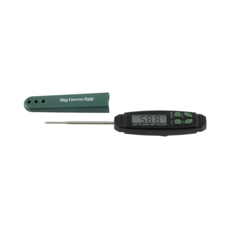 Le nouveau thermomètre numérique pour aliments à lecture rapide Big Green Egg fournit des lectures précises de la température des aliments en quelques secondes ! Le thermomètre tient facilement dans votre poche et la poignée sert également de couvercle pour le rangement.