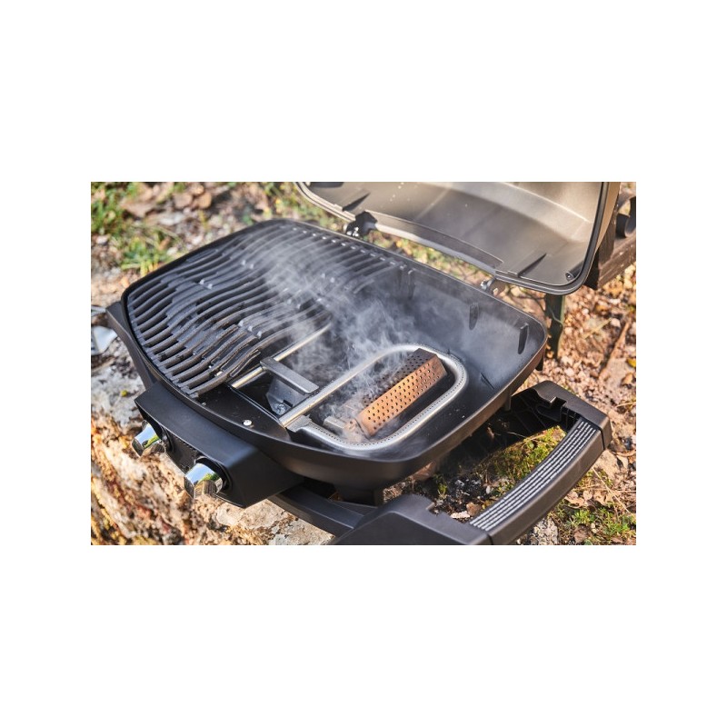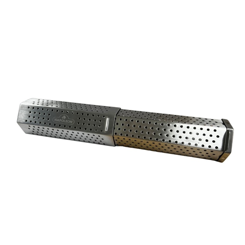 Fumez votre viande, vos poissons ou encore vos légumes ou apportez tout simplement un goût fumé délicat aux plats grâce au boîtier à fumage extensible de chez Napoleon (18cm minimum jusqu'à 30cm maximum). Il vous suffit d'humidifier vos copeaux (chips) de bois minimum 30 minutes puis égouttez les et mettez les à l'intérieur de votre boîte de fumage et placez le au niveau des brûleurs ou directement sur votre grille de cuisson.