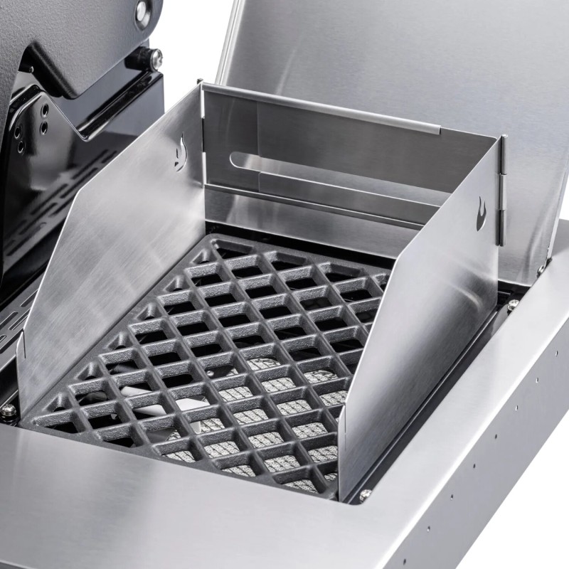 De plus, il intègre un support pour brochettes GRILL+®, permettant un gril parfaitement orienté à l’abri du vent