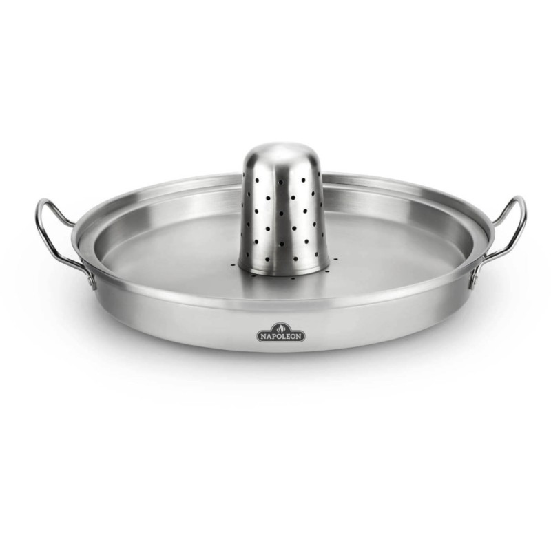 Remplissez le wok avec vos liquides aromatiques préférés, placez la plaque à ébullition par-dessus, puis ajoutez le cône infuseur. Les ouvertures dans le cône infuseur dirigent les vapeurs chargées d'arômes dans le poulet, tandis que la forme conique évite les problèmes de succion au moment de servir. Faites rôtir vos légumes préférés sur la plaque à ébullition pendant la cuisson du poulet pour un résultat délicieusement savoureux.
