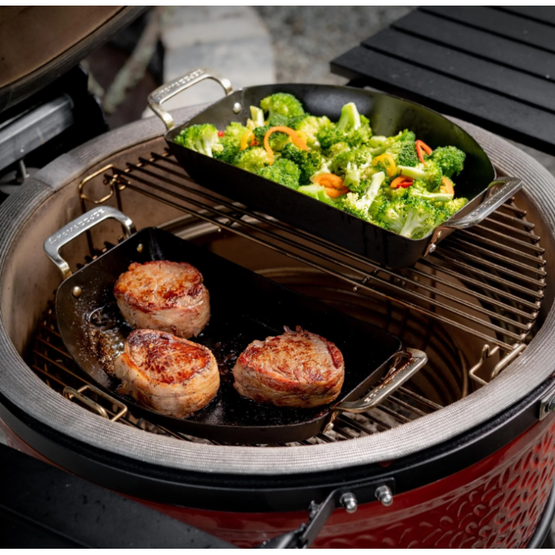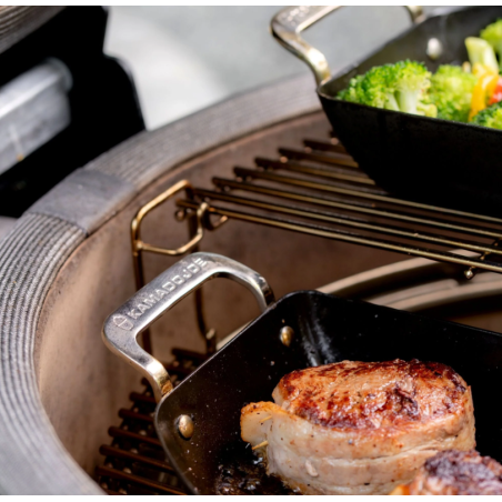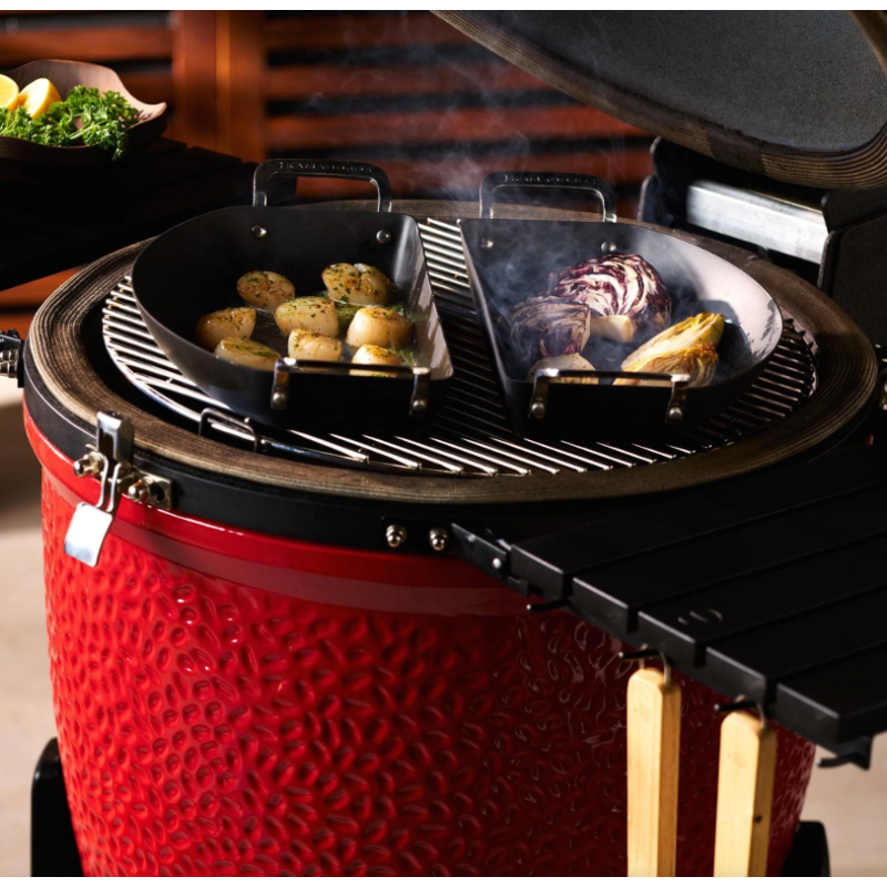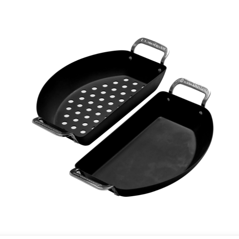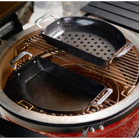 Élargis la polyvalence de ton gril en céramique Kamado Joe avec l'ensemble de poêles Half-Moon de notre collection Karbon Steel. Cet ensemble comprend une poêle perforée parfaite pour rôtir et griller, et une poêle solide idéale pour saisir et sauter.