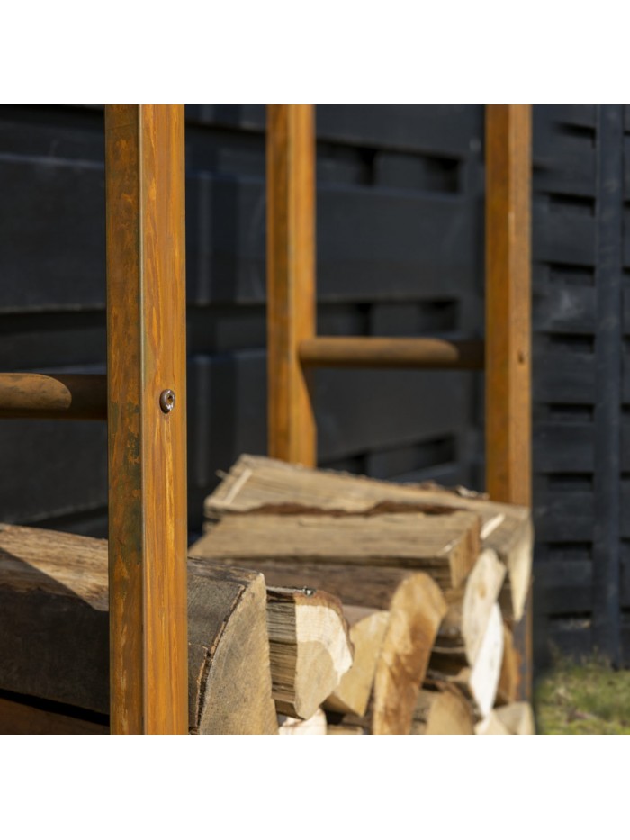 Avec ce range bois tendance dans une belle couleur noire ou rouille, vous apportez une note conviviale à votre jardin et vous disposez d'un lieu de stockage fantastique pour votre bois.