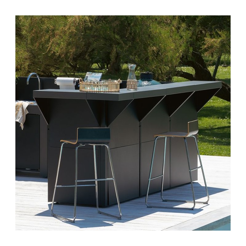 Ensemble habillage arrière et comptoir bar en acier galvanisé résistant aux intempéries et aux UV permettant de concevoir un bar complet. Adaptable sur tous les meubles Félix, sa robustesse et sa largeur lui permettent de servir de zone de service où il sera possible de disposer des plats et des boissons à portée de mains des invités. Le comptoir bar crée un espace convivial où les amis pourront se rassembler et profiter des longues soirées d'été.