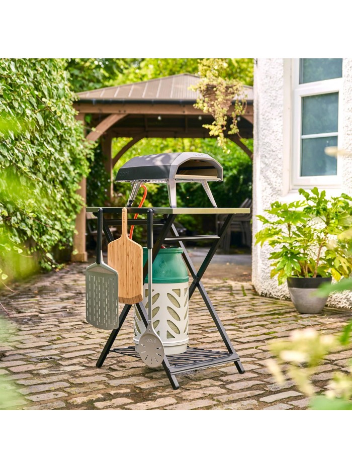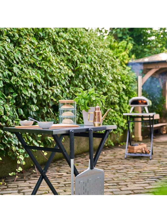 Facile à transporter et à ranger, cette table pratique constitue une excellente surface d'appoint pour votre four à pizza Ooni, et se replie presque à plat lorsque vous avez terminé. Utilisez-la dans un jardin, sur un balcon ou lors d’un déplacement.