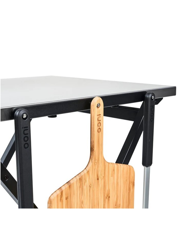 Cette table est compatible avec tous les fours Ooni et dotée d'une surface de travail en acier inoxydable de qualité commerciale ainsi que d'un cadre en acier au carbone à revêtement en poudre. La table pliante Ooni est également équipée d'une étagère intégrée ainsi que du kit de crochets Ooni pour vos accessoires.