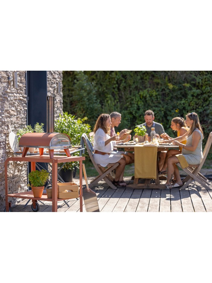 Cette desserte très pratique vous permet d'y installer votre four à pizza. Il vous permet non seulement de profiter d'un support stable pour votre four mais également d'un petit espace de préparation pour vos pizzas.