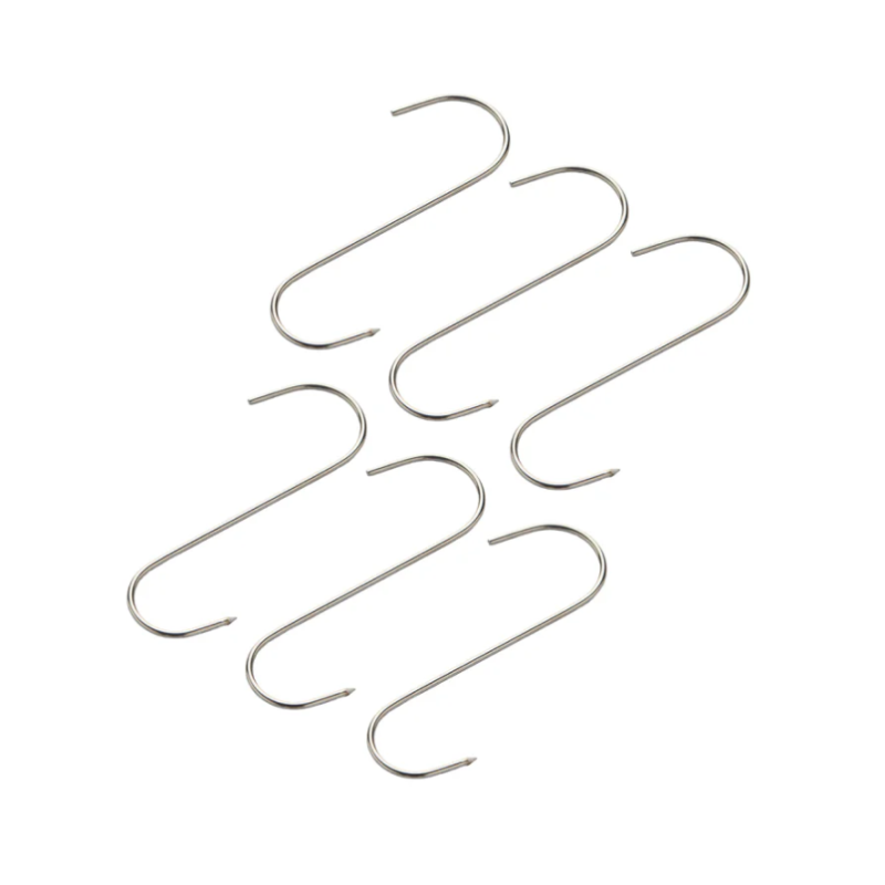 Lot de 6 crochets à fumer en inox, parfait pour suspendre des aliments dans un fumoir ou au dessus d'un barbecue ou brasero!