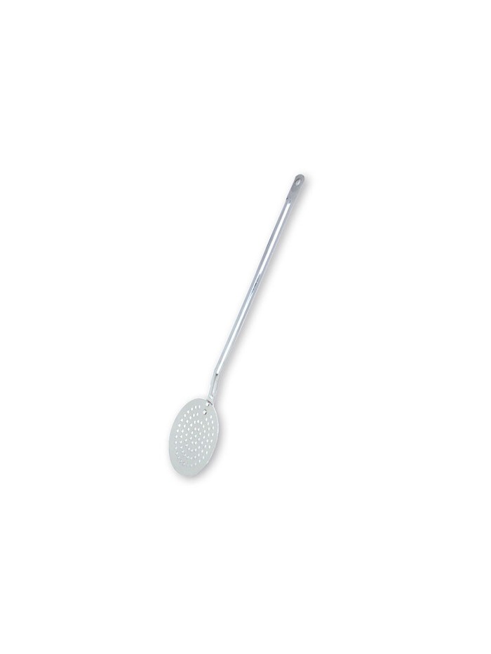 Longue cuillère à trous Vaello Campos inox La spatule en inox Vaello Campos est l'ustensile indispensable lorsque vous cuisinez une savoureuse paella entre amis ou en famille, voici ses avantages : Conçue en inox elle est garantie contact alimentaire, ne modifie pas le goût de aliments, résiste à la corrosion en plus d'être facile à nettoyer (passe au lave vaisselle). Pourvue de trous, elle est idéale pour assurer un service propre. La longueur du manche - 48 cm - s'adapte parfaitement pour les plats à paella ayant un diamètre allant jusqu'à 60 cm. L'extrémité haute de l'écumoire se termine par un crochet parfait pour le suspendre à portée de main quand vous êtes aux commandes.