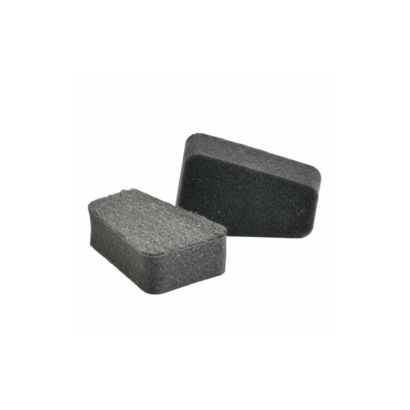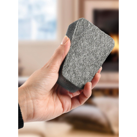 Lot de 2 éponges de nettoyage à sec, permettant de nettoyer les vitres de poêles et inserts sans eau, ni produit ménager, en évitant tout risque de rayures (testé et garanti par laboratoire indépendant).