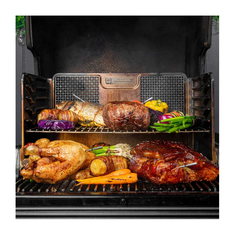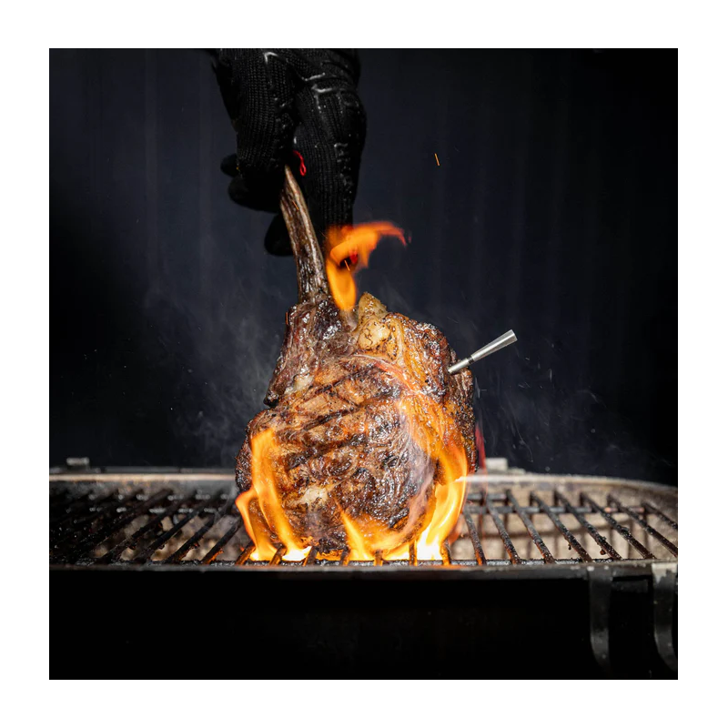 - Cuisson à chaleur directe jusqu'à 550°C, désormais vous pouvez laisser la sonde dans la viande au-dessus de la flamme pendant la cuisson et la saisie.