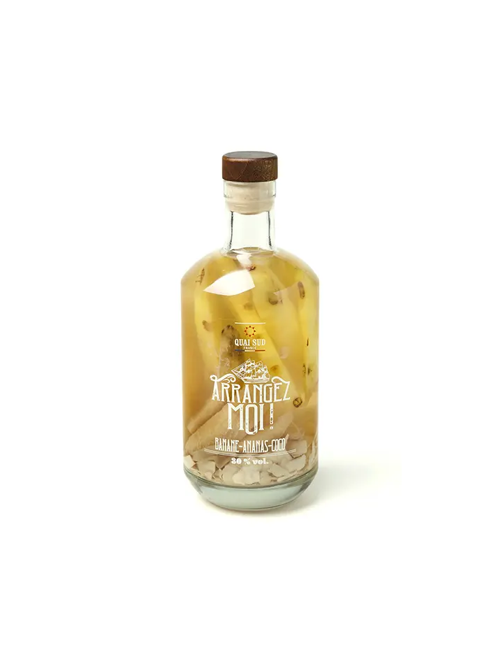 Découvrez notre rhum arrangé aux saveurs gourmandes qui vous transportent dans les îles ! C’est un rhum blanc d’exception que nous avons parfumé de larges tranches d’ananas ???? et de banane ???? pour adoucir la puissance du rhum d’une note fruitée. Quelques lamelles de coco ???? agrémentent le tout de leur saveur suave… Délicieux ! A déguster pur ou façon ti’ punch les yeux fermés, pour se croire sous les cocotiers… Vous entendez la mer ?