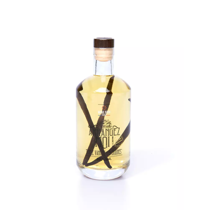 Embarquez pour les tropiques avec notre délicieux rhum arrangé à la vanille ! Aucun autre ingrédient que la vanille n’évoque mieux le parfum des îles. L’arôme intense des gousses de vanille entières se diffuse lentement dans cette boisson spiritueuse à base de rhum blanc, pour vous offrir une expérience de dégustation unique et particulièrement savoureuse. Cette recette gourmande de rhum arrangé triple vanille est une création exclusive de Quai Sud ; elle ravira les amateurs de rhum arrangé à la recherche de saveurs puissantes, rondes et délicates qui s’affinent au fil des années. Une véritable petite merveille.