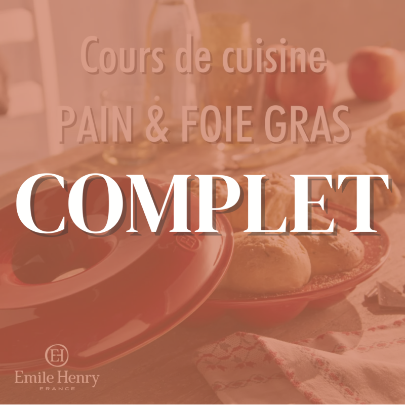 Accompagné d'un chef cuisinier, venez apprendre à fabriquer votre pâte à pain et votre foie gras ! Par la suite, le chef vous donnera ses astuces de confection et de cuisson dans les plats de la marque Emile Henry vendus en magasin.