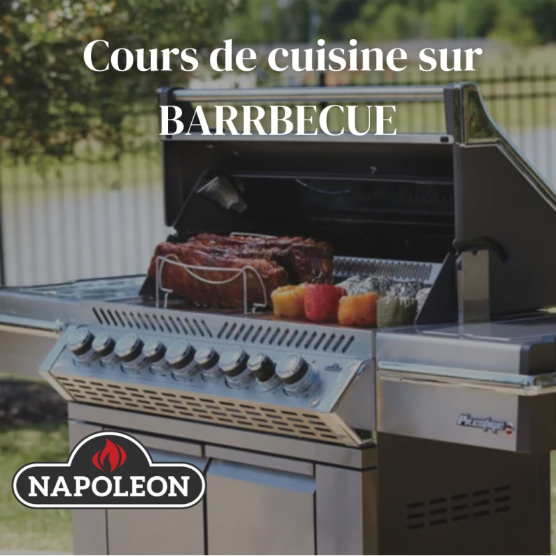 Accompagné d'un chef cuisinier de la marque Napoléon, venez apprendre à réaliser un menu de l'entrée au dessert sur votre barbecue ! Par la suite, le chef vous donnera ses astuces de confection et de cuisson pour exploiter le potentiel de votre barbecue Napoléon au maximum..