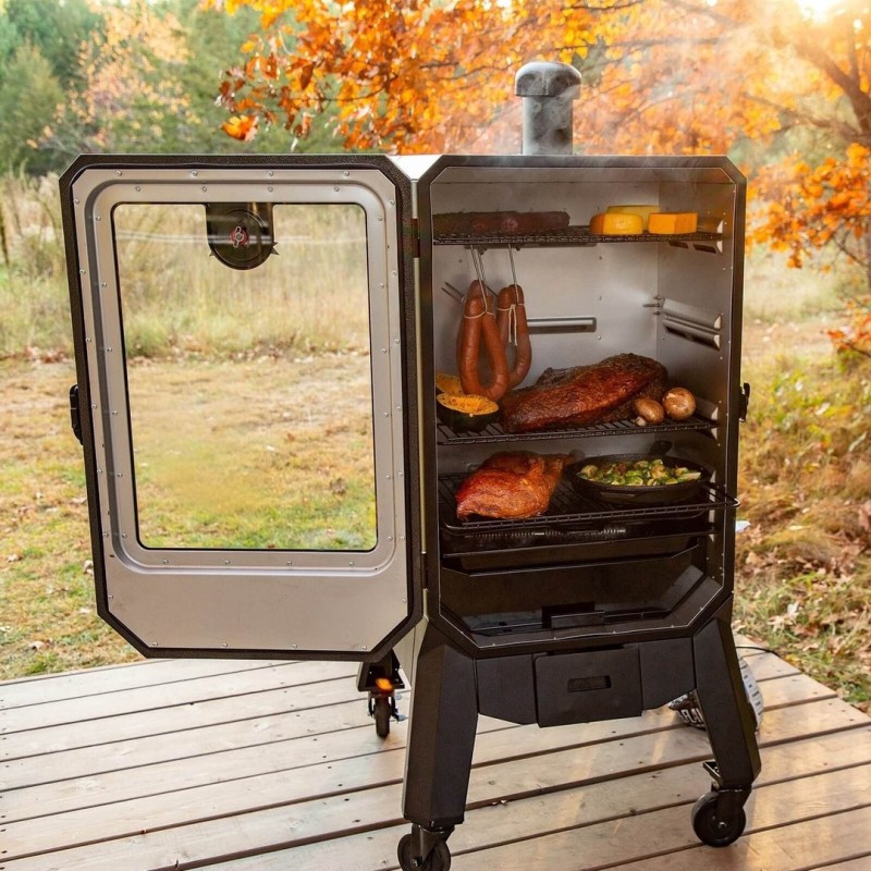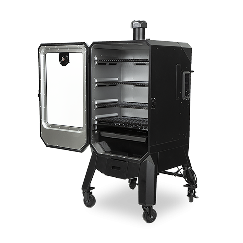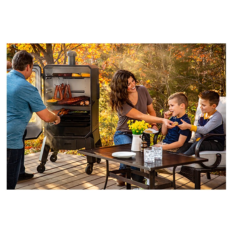 jamais l'obtention de la véritable saveur du bois n'a été aussi intelligente, facile et accessible qu'avec le Pit Boss Pro Séries 4-Series Fumoir Vertical