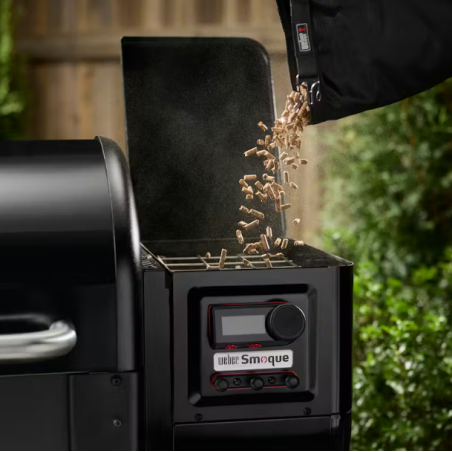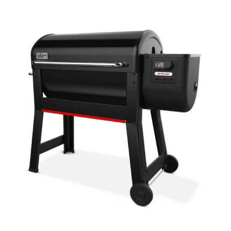 Découvrez le plaisir et le goût du fumage avec le fumoir à pellets Weber Smoque XL. Laissez circuler les arômes fumés grâce au réglage SmokeBoost qui maintient des températures idéales pour une absorption optimale de la fumée et au système SmoqueVent qui fait circuler la fumée autour des aliments pour obtenir des saveurs intenses et les dorer délicieusement. Passez de la cuisson lente à basse température au rôtissage et à la cuisson comme dans un four avec une plage de températures de cuisson permettant de préparer des travers de porc ou une poitrine de bœuf fumés, de la viande séchée (jerky), un poulet rôti, des plats cuisinés et des accompagnements. Cuisinez plusieurs aliments en même temps pour de nombreux convives grâce à une surface de cuisson de plus de 5 900 centimètres carrés.
