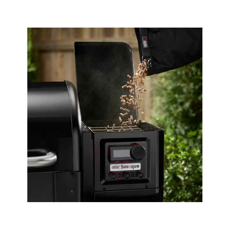 La trémie latérale est facile à charger, peut contenir un sac standard de pellets de 9 kg et est équipée d’une poignée d'évacuation qui permet de varier facilement les saveurs des pellets.