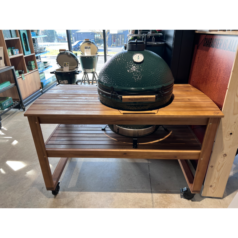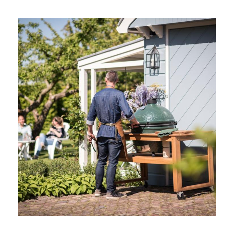 Chaque table roulante en acacia Big Green Egg est un meuble unique car sa production respecte les contours de l'arbre, notamment sur les planches externes. D'une grande résistance, votre table Big Green Egg demande peu d'entretien et peut rester dehors toute l'année.