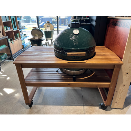 Grâce à ses dimensions généreuses, elle permet de disposer d'une grande surface de travail autour du foyer et d'avoir vos plats, ustensiles et ingrédients à porter de main. Disposant d'une découpe spéciale, votre barbecue Big Green Egg XLARGE est maintenu en toute sécurité.