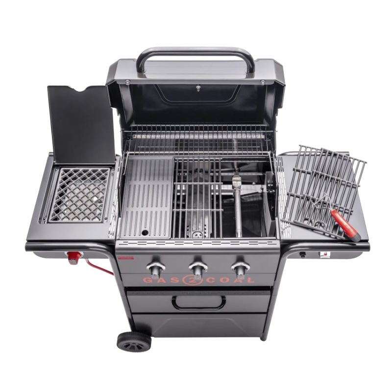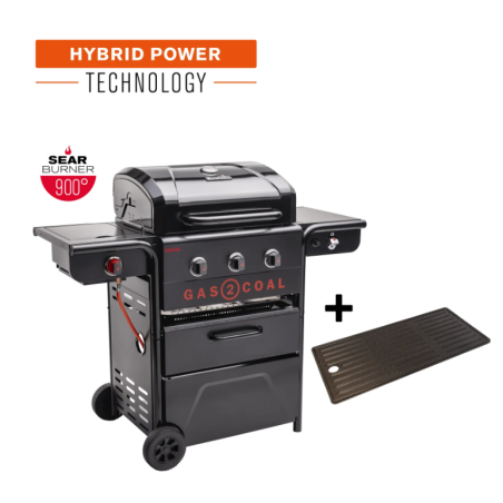 Le célèbre barbecue hybride Char‑Broil à gaz et charbon de bois, dorénavant équipé d’un brûleur de saisie haute performance et d’une plaque de cuisson type plancha, marque un tournant dans l’histoire des grillades!
