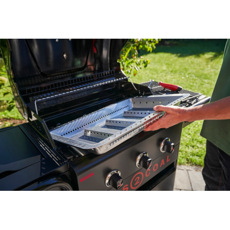 Au gaz ou au charbon de bois, sur une grille ou une plancha, pour un steak saisi à vif ou une cuisson lente : le Gas2Coal Special Edition peut tout faire ! Grâce au plateau à charbon breveté, transformez votre barbecue à gaz en barbecue à charbon en moins de 60 secondes et sans aucun outil. Offrez-vous le meilleur des deux mondes !