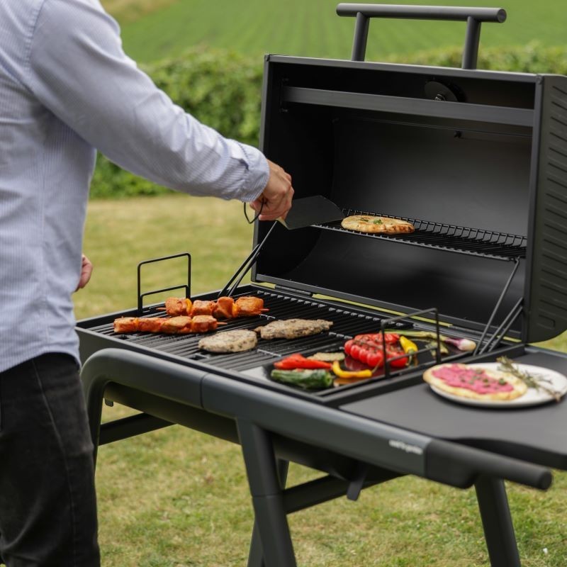 Le TONINO 70 de Cook'in Garden vous offre une polyvalence de cuisson avec sa surface composée d'1/3 de plancha, idéale pour les légumes et poissons et de 2/3 de grilles, idéales pour les tout types de viandes.