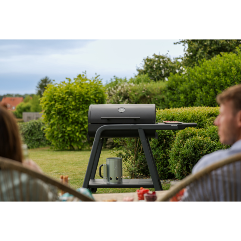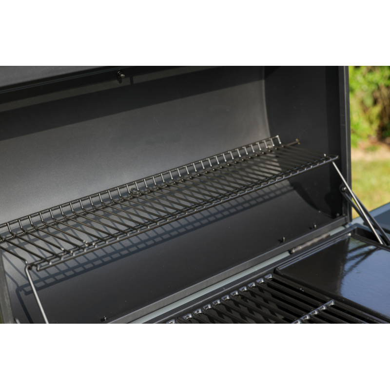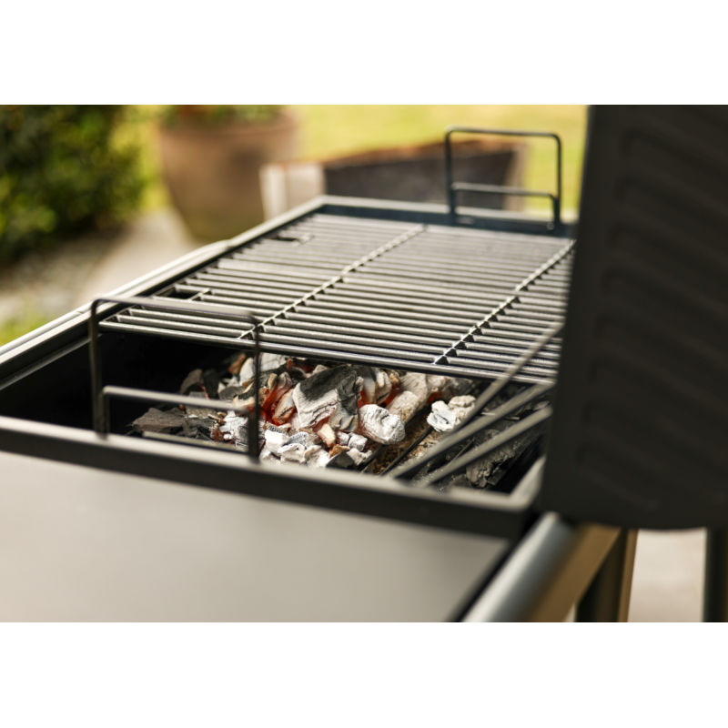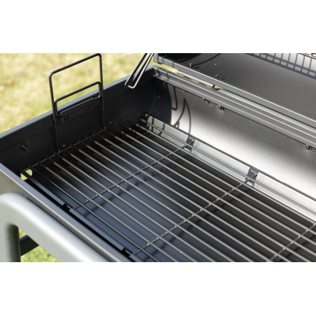 En plus d'une large surface de cuisson de 68 x 41,5 cm, bénéficiez d'une grille foyère réglable en hauteur à l'intérieur de la cuve servant à supporter le combustible dans le foyer du barbecue et d'adapter la hauteur en fonction des aliments que vous cuisinez.