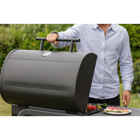Le capot du TONINO 70 en acier époxy est composé d'une poignée frontale et d'un thermomètre intégré vous aidant ainsi à contrôler et surveiller régulièrement la cuisson de vos aliments sans les brûler.