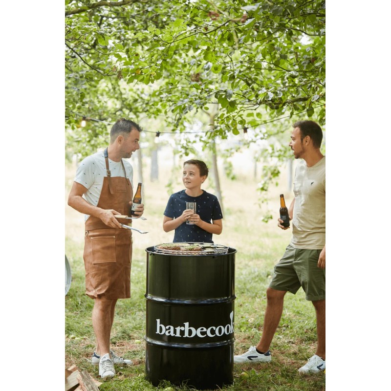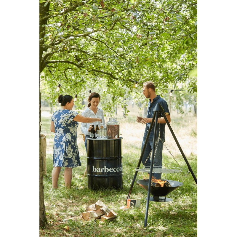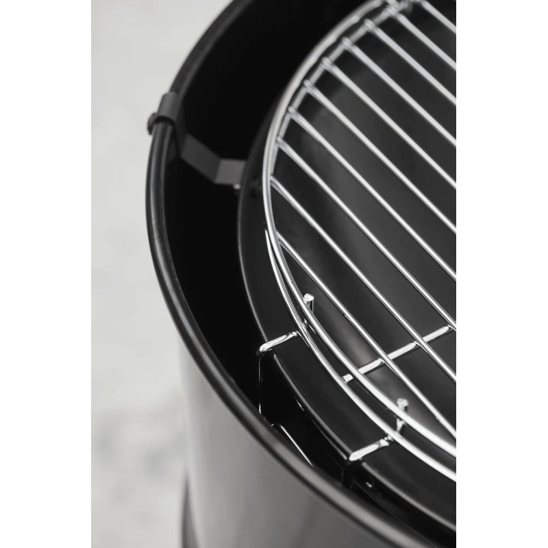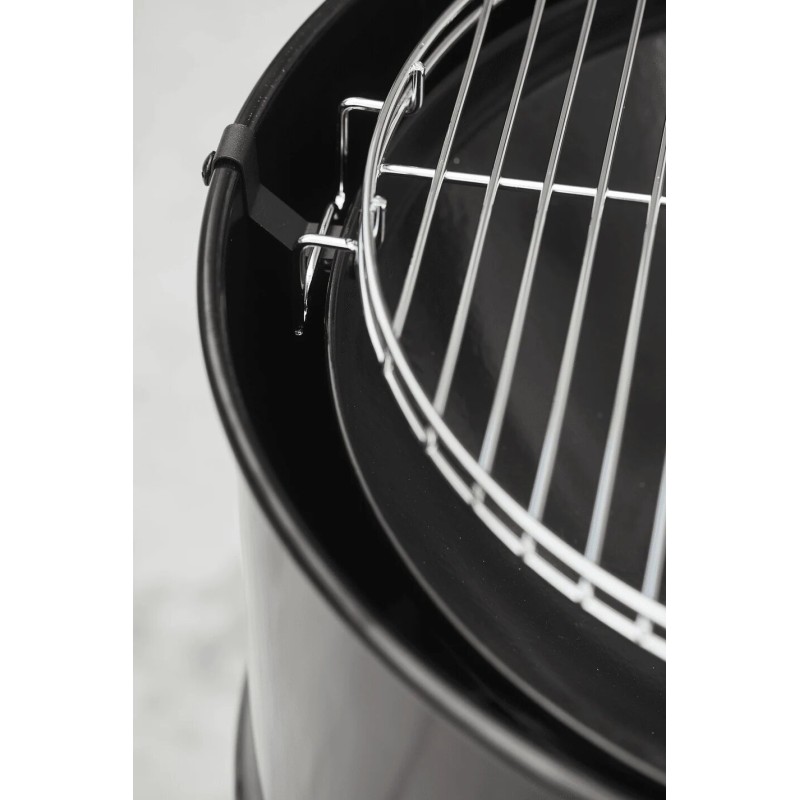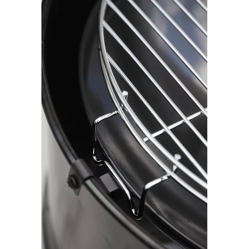 Le barbecue au charbon de bois a une hauteur de 90 cm et une grille en acier chromé d'un diamètre de 47,5 cm.