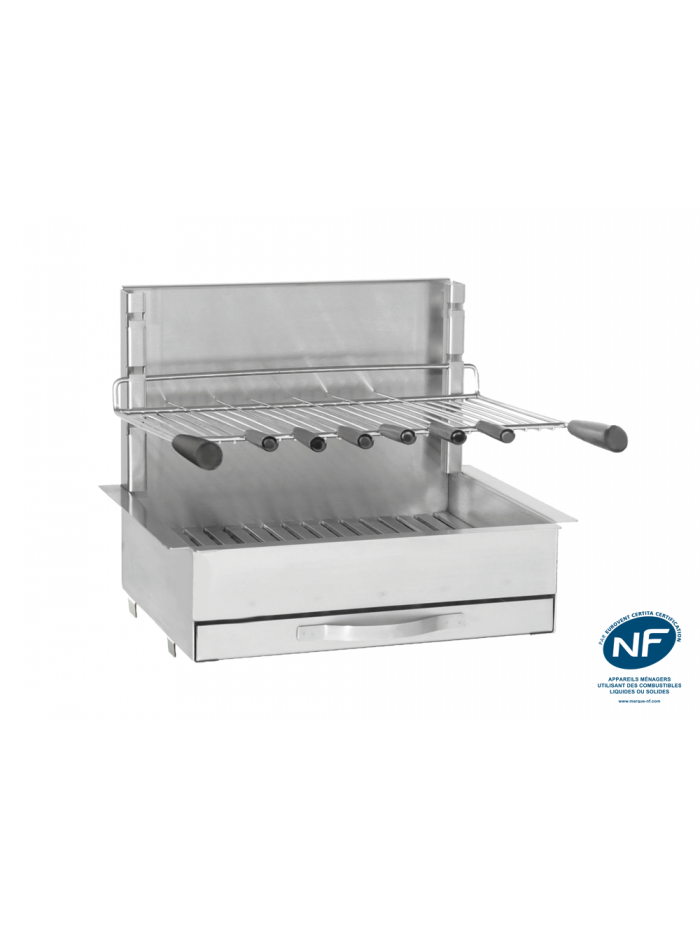Ce barbecue charbon de bois peut s'encastrer dans un chariot, une desserte et dans une cuisine d'extérieur.