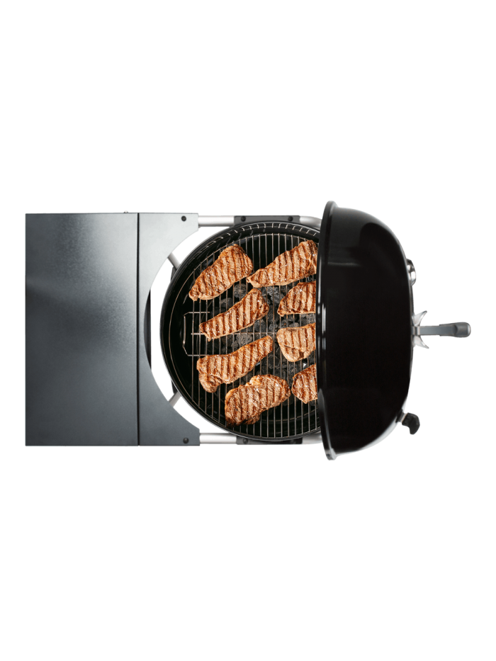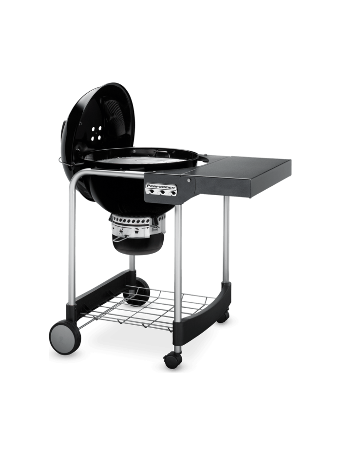 Que ceux qui aiment le charbon et déguster des aliments absolument délicieux cuits au barbecue lèvent le doigt ! Que vous souhaitiez passer du bon temps sur une petite terrasse ou dans un grand jardin, le barbecue ne connaît aucune limite. Une fois le repas terminé, rabattez les plans de travail, rapprochez vos chaises et portez un toast au barbecue à charbon Performer GBS. Une authentique expérience de cuisine au charbon avec des équipements additionnels dont un plan de travail rabattable.