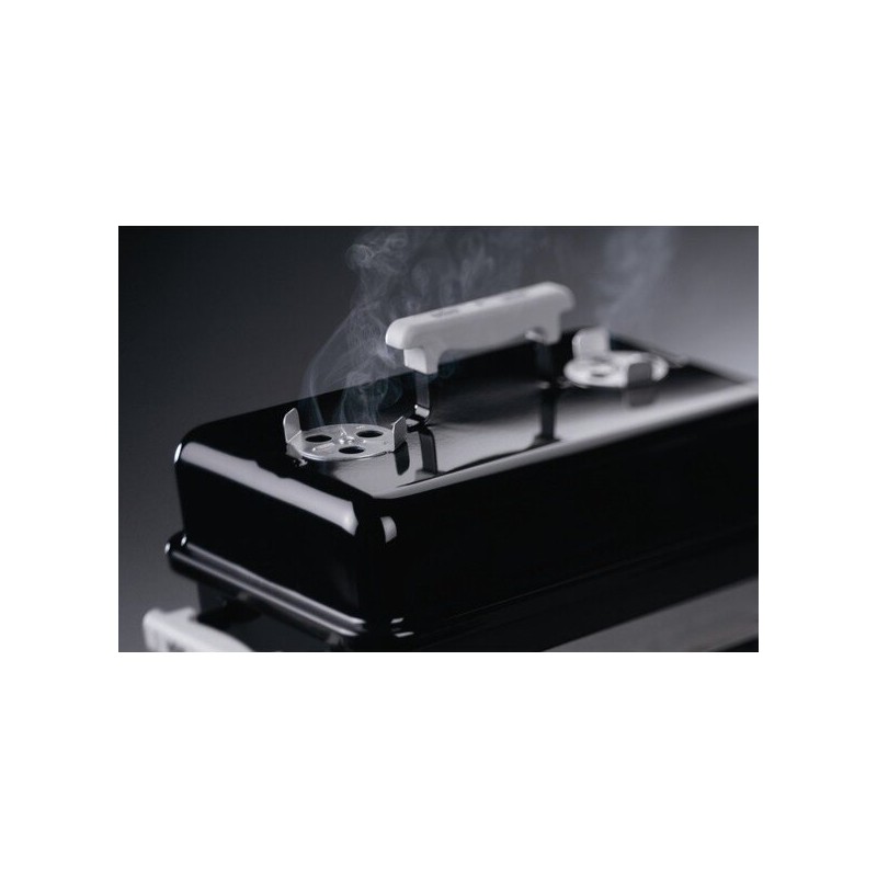 - Contrôle précis de la température en ajustant le clapet de ventilation sans soulever le couvercle. La fermeture totale du clapet coupe le flux d’oxygène et permet d’éteindre les braises.