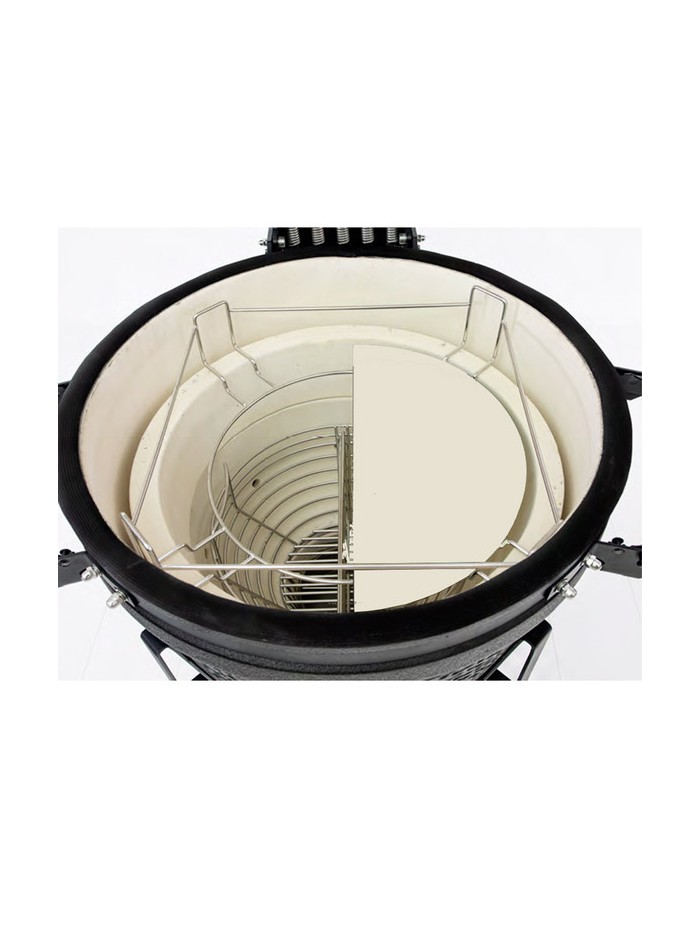 C’est un kamado qui allie solidité et robustesse grâce aux matériaux choisis pour sa conception. Il est fait de céramique cordiérite qui permet une bonne protection contre les hautes températures. Vous pouvez utiliser votre kamado pendant des heures sans perdre en chaleur et sans avoir besoin de rajouter du charbon, ce qui fait tout son charme. En plus d’être un barbecue facile d’entretien, il saura vous accompagner dans la préparation de plats savoureux. Vous pourrez jouer entre cuisson directe et indirecte en fonction de vos envies, il pourra également faire office de four pour y faire cuire tous types de préparations : pains, tarte, gâteaux… Le modèle Medium vous offre une grille de cuisson d'un diamètre de 49 cm ainsi qu'une grille épaisse de 7 mm. Son utilisation est conseillée pour 8 à 10 convives.