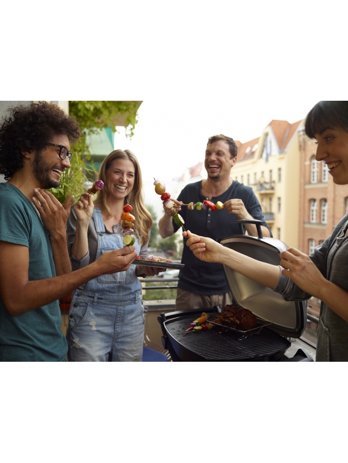 Organisez une fête au cœur de la ville illuminée, entouré des gratte-ciels et de vos meilleurs amis. Levez vos verres et trinquez à votre balcon. Il y a toujours suffisamment d’espace pour cuisiner au barbecue avec un barbecue électrique Q 2400.