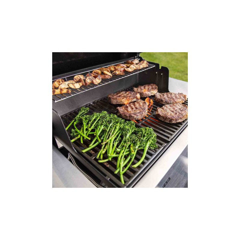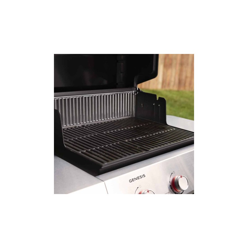 • Les grilles de cuisson en fonte émaillée retiennent la chaleur pour une saisie optimale des aliments.