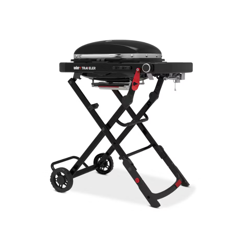 Optez pour la cuisson au barbecue lors de votre prochaine aventure en plein air grâce au barbecue à gaz Weber Traveler Compact. Avec une largeur de 81 cm et un poids de seulement 17 kg, il est 20 % plus petit que le barbecue Weber Traveler d’origine et se glisse facilement dans le coffre de la plupart des voitures compactes.