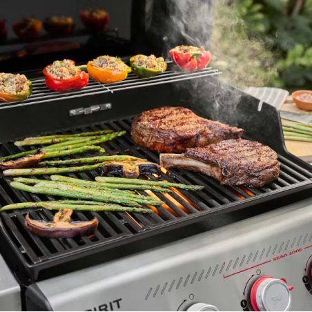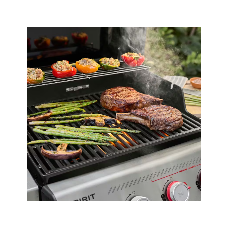 Préparez des aliments plus savoureux que jamais avec le barbecue à gaz réinventé Spirit E-435, doté de 4 brûleurs, d'une Sear Zone et d'un réchaud latéral. Créez de belles et savoureuses marques de saisie sur la viande, le poisson et les légumes grâce aux deux boutons de réglage rouges des brûleurs Boost qui libèrent 40 % de puissance en plus dans la Sear Zone.