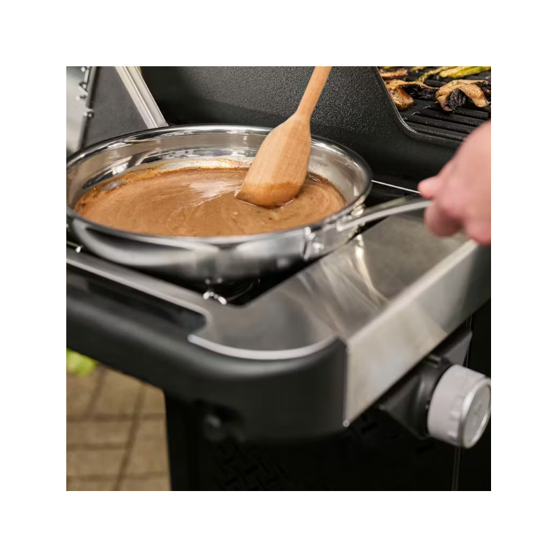 Allumez facilement chaque brûleur d’une seule main grâce à l’allumage Snap-Jet et réglez la chaleur avec précision sur toute la plage de température, de feu doux à feu vif en passant par tous les niveaux intermédiaires. Tirez le meilleur parti de votre espace en ajoutant une variété d’accessoires Weber Works qui se clipsent sur les deux rails latéraux. Les grilles de cuisson en fonte émaillée robustes se retournent pour accueillir les accessoires de barbecue Weber Crafted Gourmet BBQ System (GBS), vous offrant une polyvalence culinaire ultime pour vous permettre de configurer votre barbecue à votre guise avec une plancha, une pierre à pizza, une grille de saisie à quadrillage et bien plus encore. Sur ce modèle, la tablette latérale droite se replie facilement pour s’adapter aux plus petits espaces.